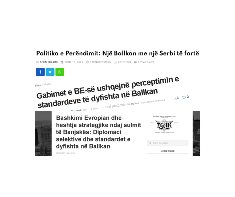 While the following articles illustrate how the narrative that the EU has double standards towards the Balkan countries is built. One of the articles throws the idea that the EU and the West (the USA) are working to create a strong state in the Balkans and this state is Serbia. While another article tries to present the mistakes that the EU has made in relation to the Balkans and how these mistakes have created the idea that the EU follows double standards in the Balkans. Although the article has this purpose, in the title acknowledges that this perception exists. Likewise, the third illustrative article insists on the idea that the EU has double standards in this region.