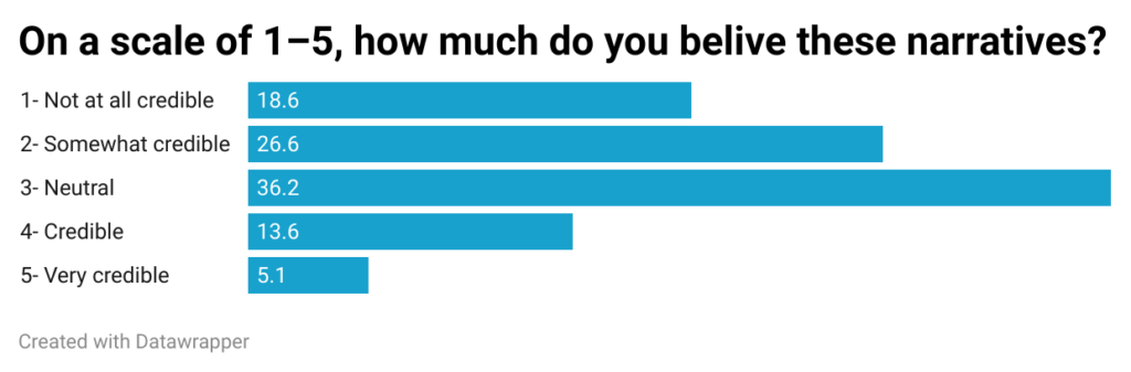 Although the data above shows that those who believe these narratives, a large majority are neutral.