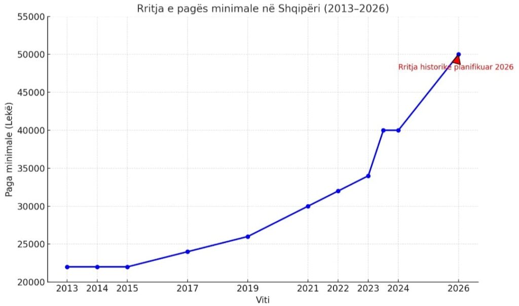 Kjo pasqyrë tregon se rritja e pagës minimale ka qenë graduale, por fuqia reale e saj ka mbetur e kufizuar përballë inflacionit dhe shtrenjtimit të shërbimeve bazë.