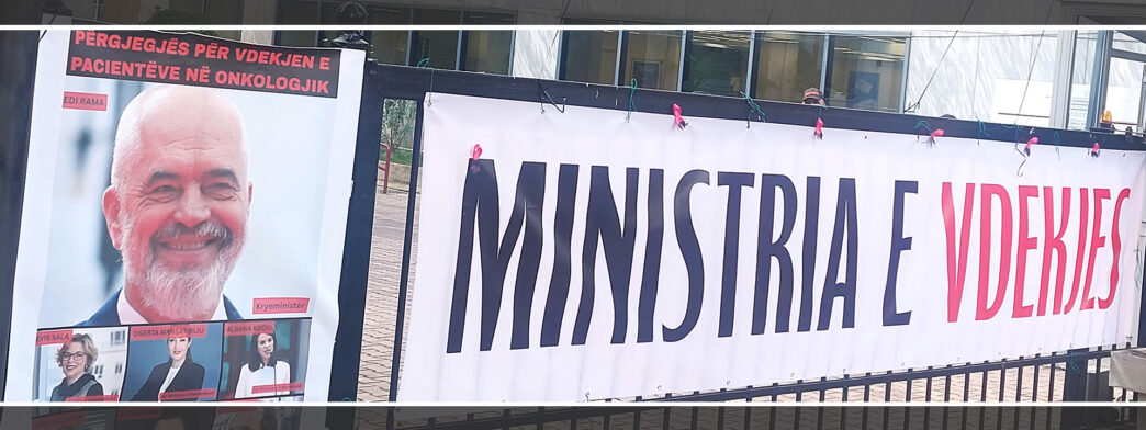 Dhjetëra qytetarë kanë protestuar para Ministrisë së Shëndetësisë, për të denoncuar mungesën e shërbimit në sistemin shëndetësor publik, veçanërisht në Spitalin Onkologjik, ku trajtohen pacientët me kancer. Në kontrast me fushatën ndërkombëtare “Tetori Rozë”, që synon ndërgjegjësimin për kancerin e gjirit, protestuesit zgjodhën ngjyrën e zezë për të shprehur dhimbjen, revoltën dhe zhgënjimin ndaj institucioneve shëndetësore shqiptare. Me tullumbace të zeza në duar, ata kërkuan medikamente, pajisje dhe trajtim të duhur për pacientët e sëmurë me kancer.
