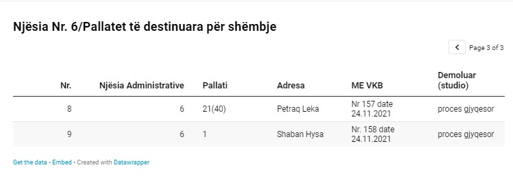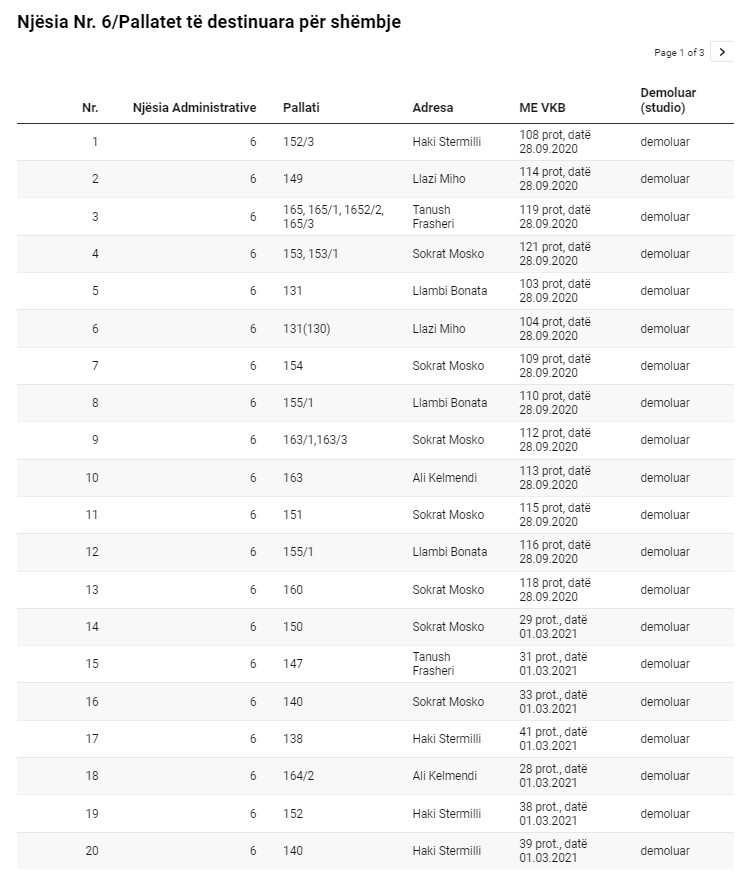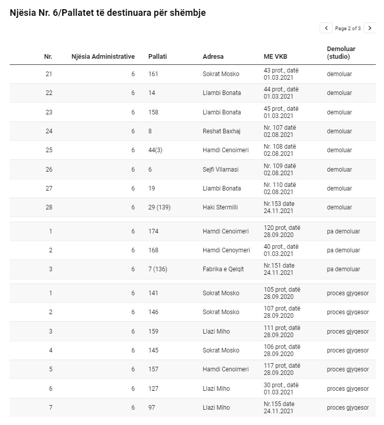 Në vijim të shkresës së sipërcituar, me anë të së cilës kërkohet informacion për procesin e Rindërtimit në Kombinat si pasojë e tërmetit të ndodhur në nëntor të vitit 2019, ju bëjmë me dije se: Në Njësinë Administrative nr. 6 janë demoluar deri tani 28 pallate. Janë në proces demolimi 3 pallate, (arsyeja e mosshembjes është rezistenca nga banorët). Janë në proces gjyqësor 9 pallate”, shkruan Drejtoria e Emergjencave Civile.