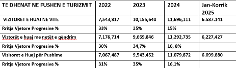 Sipas të dhënave të Institutit të Statistikave (INSTAT), në janar-gusht 2025, në Shqipëri kanë hyrë gati 9 milionë turistë të huaj, një rritje vetëm prej 5.2% krahasuar me 2024. Ndërkohë që një vit më parë, ritmi ishte 18.6%.