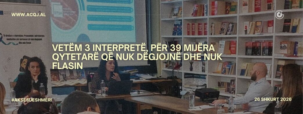 Danjela Burnazi, drejtoreshë e Institutit për Zhvillim dhe Inisiativa Qytetare shprehet se nga të dhënat e Censusi të vitit 2023 jetojnë 38.814 persona me aftësi të kufizuara të dëgjimit, nga të cilët 5 mijë nuk dëgjojnë dhe nuk flasin në mënyrë totale dhe kanë nevojë për interpretër jo vetëm në media, por edhe në shërbimet e tjera publike.
